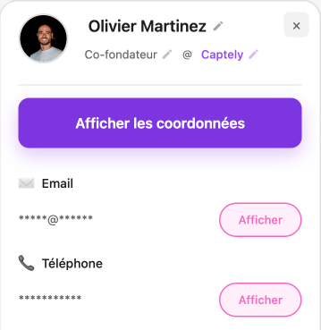J'ai trouvé des emails et numéros fiables en quelques minutes. Très facile à utiliser, même pour les non-techniques.