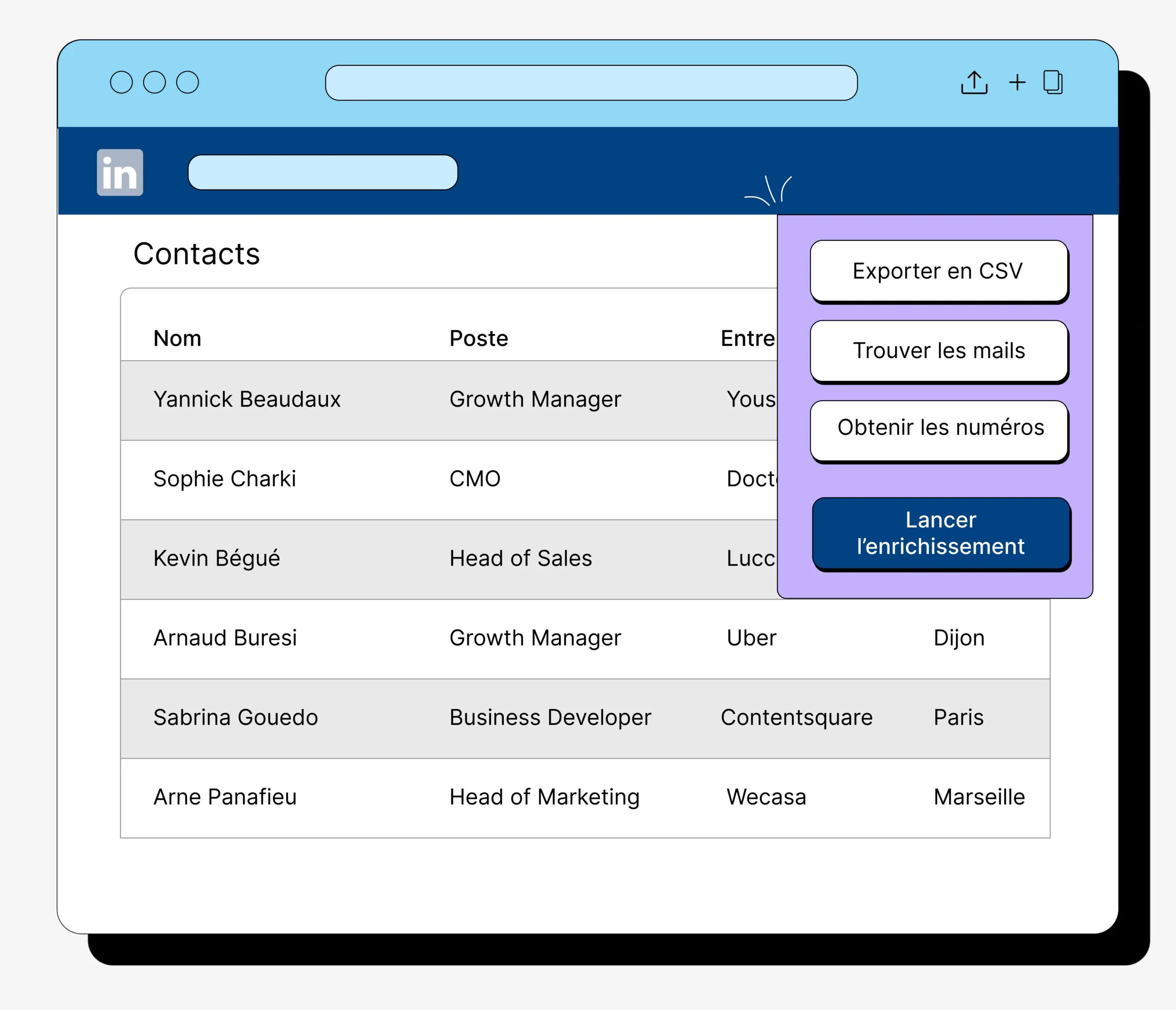 J'ai trouvé plus de contacts en une semaine qu'en un mois avec mon ancien outil. L'extension Chrome est top.